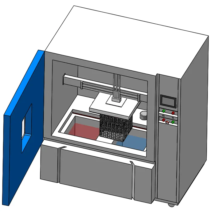 | Camere calde e fredde | Serbatoi liquidi indipendenti con controllo preciso della temperatura. L'alta uniformità termica garantisce ogni superficie del campione esperienze di uguale stress. Costruito con materiali resistenti alla corrosione per maneggiare oli, fluidi fluorurati o liquidi corrosivi. |  |