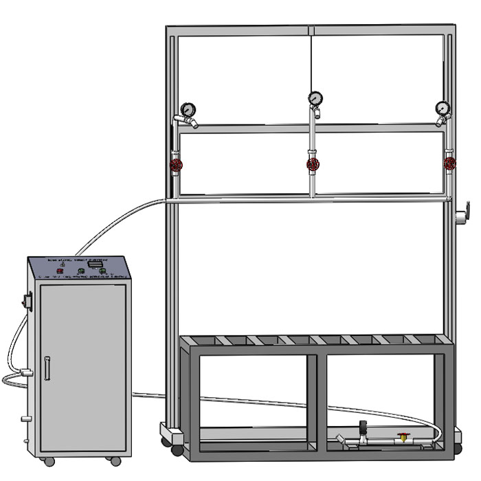 | Dotato di un ugello in acciaio inossidabile con un diametro di 0, 5mm, è installato su una staffa regolabile in altezza per simulare il punto di atterraggio naturale della goccia di pioggia. | La valvola di controllo del flusso e il manometro garantiscono che il flusso d'acqua sia stabile ed è anche dotato di un misuratore di portata per un monitoraggio preciso. |