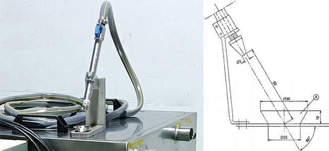 L'ugello ha un diametro di 2mm ed è installato ad un angolo di 60 ° rispetto al corpo della ciotola, riprodurre accuratamente l'angolo di impatto del flusso d'acqua e soddisfare i requisiti di prova della figura 101 nello standard GOST IEC 60335-2.